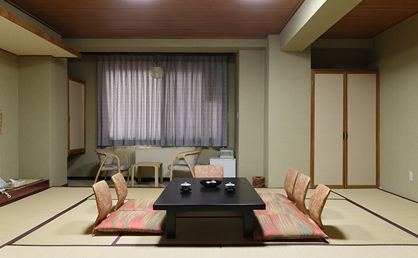 落ち着いた十畳又は十二畳のトイレ付き和室です。シニア、カップル、ファミリー、グループにおススメです。Wi-Fiも利用できます。