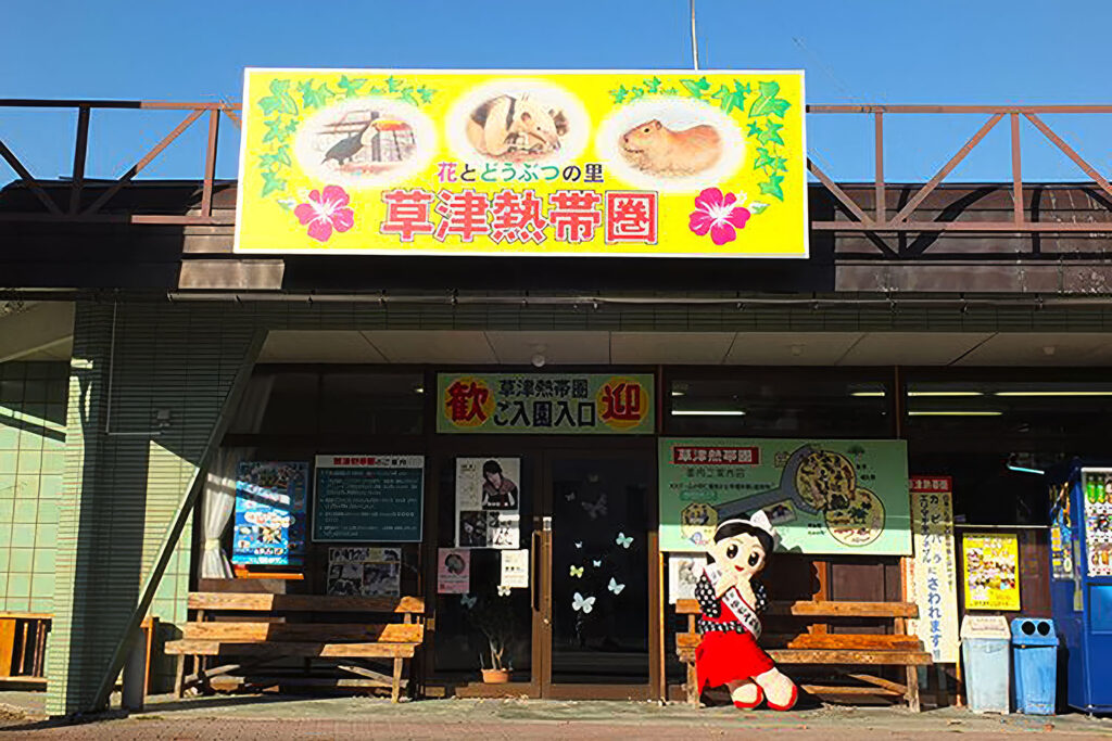 古き良き昭和の面影が残るレトロな外観の「草津熱帯圏」は、